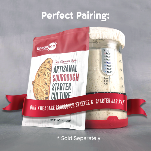 Jumpstart your sourdough journey with the KneadAce® Sourdough Starter Culture, a powerful blend of wild yeast and beneficial bacteria designed to create flavorful, nutritious bread with ease. Made from natural, non-GMO ingredients, this dehydrated starter reactivates in just 3 days, cutting down the time needed to develop a robust and active culture.