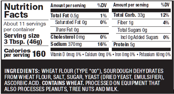 - Includes instant dried yeast packet.